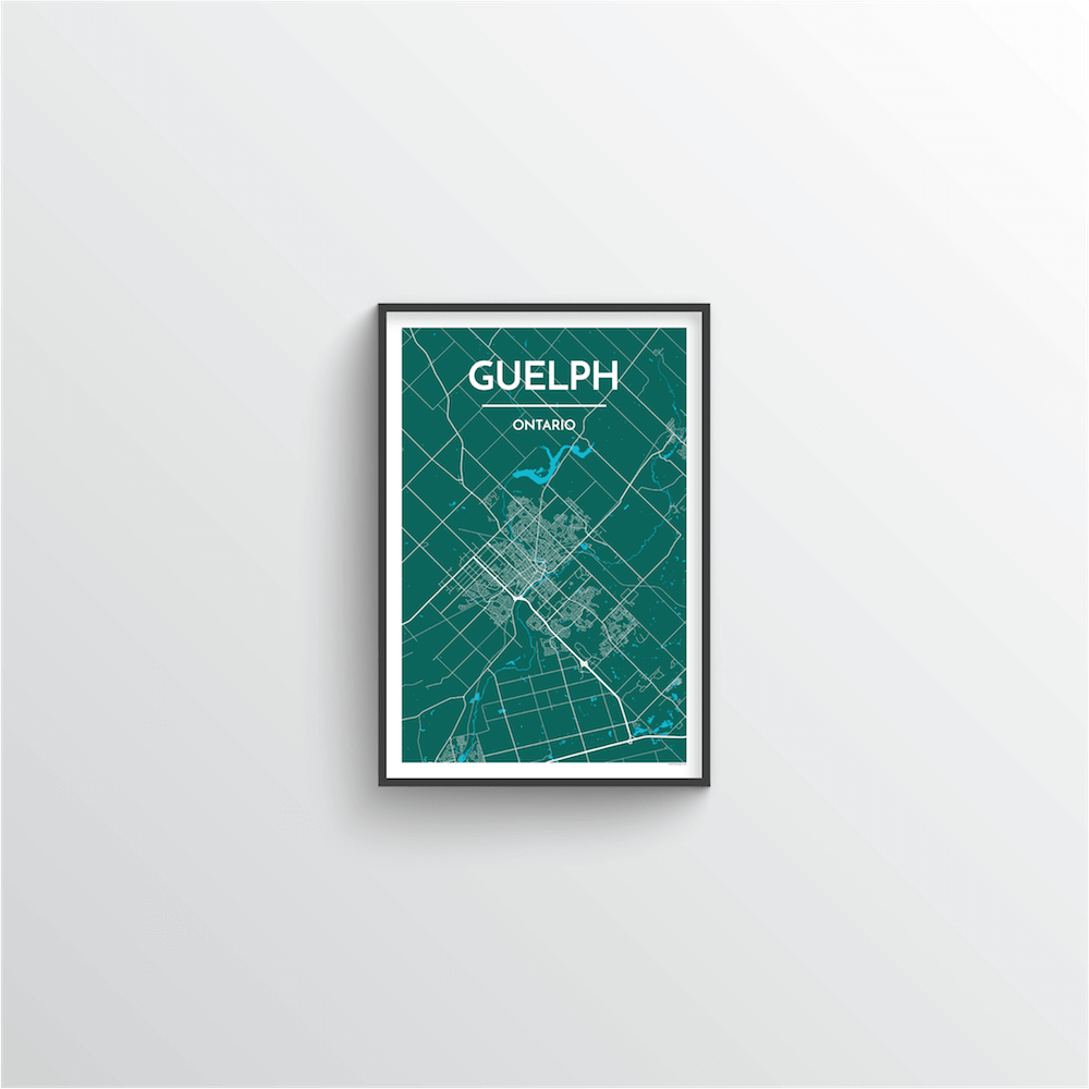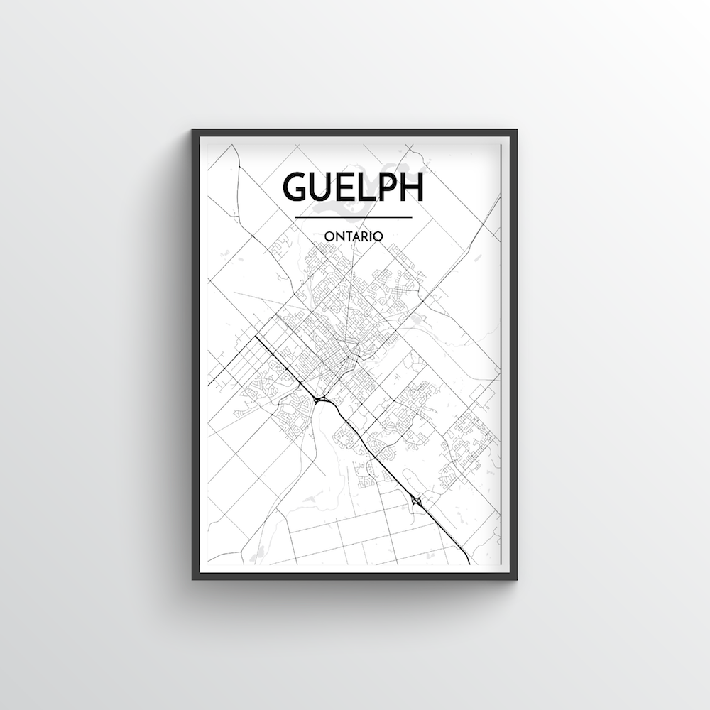 Framed Guelph City Map City Map Art Prints High Quality Custom